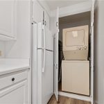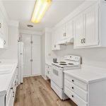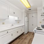Highly sought after End Unit Monterey model with easy access to parking. This Monterey model has updated flooring and fresh paint and is ready for you to come and make it your own. Two bedroom one bath home. Beautiful luxury vinyl plank flooring throughout home with updated baseboards. Stackable w/d in Kitchen closet. Large vinyl clad windows allow the sunlight to pour in and take in the greenbelt views from any rooms. Large spacious patio to relax and make your own private oasis. Plenty of storage and large closets. This well-designed floor plan is situated perfectly and is just the start to your new life in the village. Parking is on same level as home entry. Abundant parking in front of building as well. Laguna woods village has 7 clubhouses, horseback riding stables, golf courses, pools, tennis, pickleball, putting green and driving range. a ton of activities daily to keep even the most active happy. freeway close, guarded gates, and dues include water, trash, cable, maintenance, and the use of all amenities. Come take a look and use this blank canvas to create your new home.