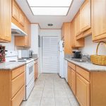 Wonderful “Coronado” CONDO is located on the top floor so there is no one above you and NO STAIRS from parking. Peaceful location. Home features an upgraded kitchen and dining area with tile flooring. Kitchen has a large skylight, custom cabinetry, granite counters and stainless sink. Stackable W/D is installed in the large kitchen closet. Smooth ceilings throughout home. Living room has a heat pump for cooling and heating. Newer Vinyl windows are energy efficient for year round comfort. Living room slider leads to the balcony where you can enjoy al fresco dining, reading or just relaxing. Balcony has lovely neighborhood and distant mountain views. Popular Club House Four with Pool, arts and crafts and Golf is close by. Assigned covered carport parking is convenient to unit. Laguna Woods Village offers residents 24 hour gated access and security patrols. Village amenities include 7 clubhouses, 5 pools and spas, stables, gardening plots, RV storage, fitness centers, computer labs and library. There’s even a private restaurant for residents only overlooking the golf course with a cocktail lounge and both indoor and outdoor dining. A multitude of Social Activities in the Village. Living here is like belonging to a country club–come see it all!