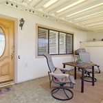 Fabulous San Clemente model located up on a beautiful bluff top location. This cottage-style model features a spacious front covered patio entrance with views. There is only one shared wall in kitchen/living room. There are windows on 3 sides of the property for great light and to take advantage of the great breezes up on the hill. Light and bright Interior features smooth ceilings, central heat/air, easy-care laminate flooring and plantation shutters. Formal entrance is through the solid oak front door with stain glass insert into the living room brightened with a Solartube skylight high upon the vaulted ceiling and windows looking out to the patio. Dining area/kitchen are located near the back entrance accessed via sliding glass doors to a rear courtyard shared by the three homes. Dining area has vaulted ceiling and recessed lighting. Kitchen features upgraded cabinets that contain lazy susans and slide out shelves, tile counters, garden window and recessed lighting. Multi-Functional guest bedroom features a ceiling fan, large built-in desk/storage area on two of the walls with window over desk seating area and matching Murphy bed for your guests. Master bedroom has added window for lots of light and cross breeze, mirrored closet doors and closet organizer. Both bathrooms have tiled floors, their own windows, slide out shelves and large stone-topped vanity areas. Master bathroom has tub/shower combo, guest bath has stall shower.