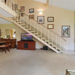 Fabulous Creek front New Seville! Building sits right above popular Aliso Creek! Gorgeous landscaped greenbelt location to enjoy all the flora and fauna of Laguna Woods. Lovely covered patio on ground floor and upstairs bedroom has a balcony to enjoy the views. Home shows pride of ownership. Spacious stock cooperative with cathedral ceiling in living room. Large bedroom and bathroom downstairs and spacious master bedroom with ensuite bathroom and loft upstairs. Washer/dryer in downstairs hall closet adjacent to bathroom. Light and bright kitchen has raised, white tile counters. There is a chair lift on staircase which owners will remove if desired by Buyer.